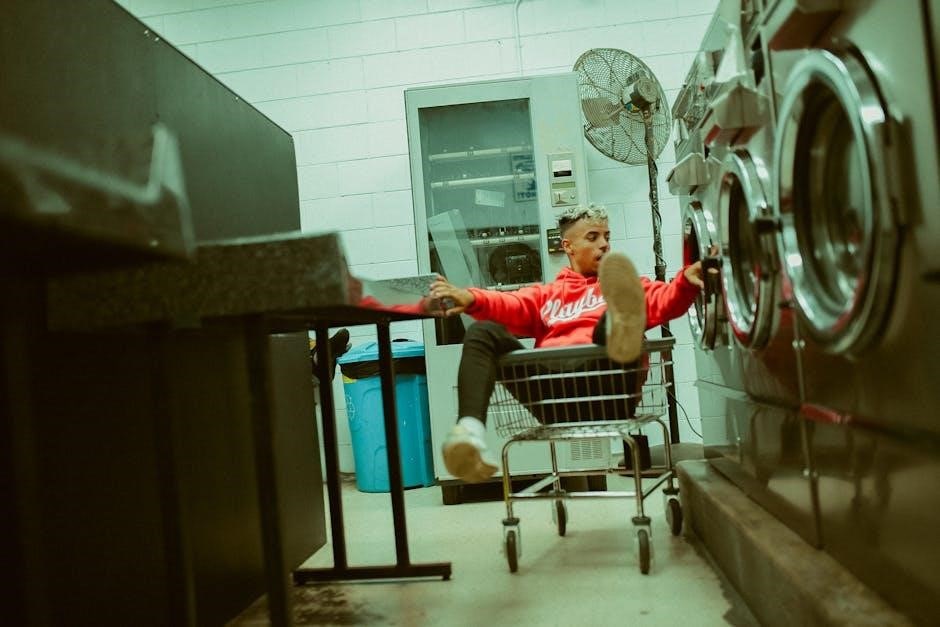 Always read and follow the Indesit Washer Dryer manual carefully to ensure safe operation. Keep children away from hot surfaces and moving parts during use. Avoid leaning on the appliance, as it may tip over. Ensure proper installation and leveling to prevent accidents. Never overload the machine, as this can cause imbalance and damage. Keep the area around the washer-dryer clear of flammable materials. Regularly inspect hoses and connections for wear. Follow all safety warnings and precautions outlined in the manual to avoid injuries and ensure optimal performance. Proper maintenance and adherence to guidelines are crucial for safe and efficient use.