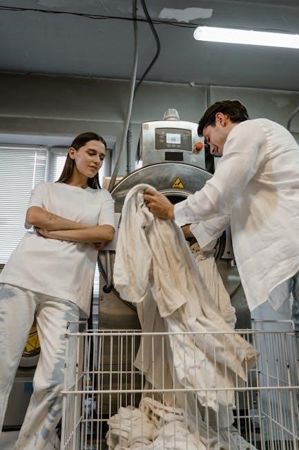 The control panel on your Indesit washer dryer is designed for intuitive operation. It features a program dial for selecting wash and dry cycles, along with buttons to customize settings like temperature, spin speed, and additional options; The LED display provides clear cycle progress updates and error codes. Familiarize yourself with the symbols and buttons to navigate effortlessly. For detailed guidance, refer to the user manual, which explains each function and ensures you make the most of your appliance’s capabilities. Proper use of the control panel is key to achieving optimal wash and dry results while maintaining energy efficiency.