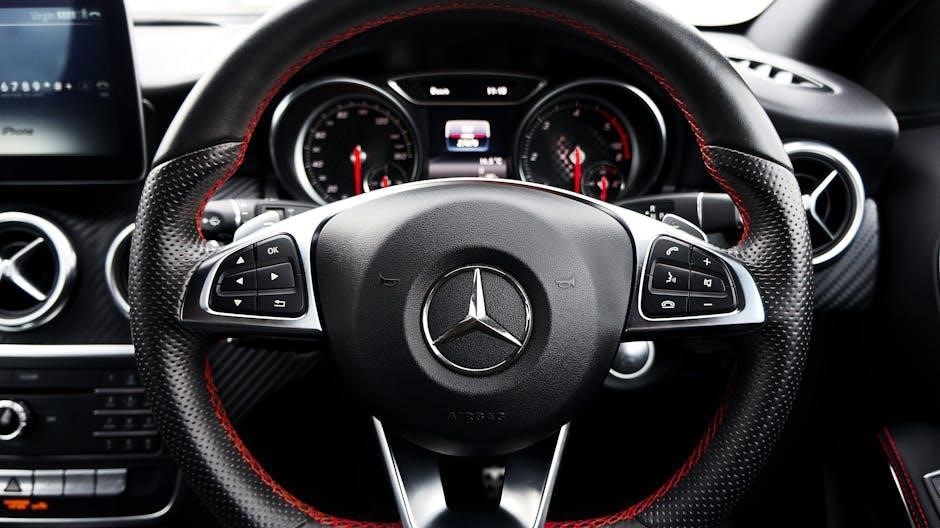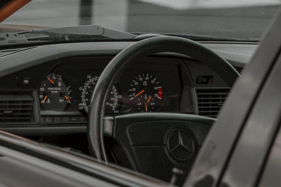 Mercedes vehicles utilize a variety of dashboard symbols to communicate essential information about the car’s condition and performance. These symbols are categorized into safety warnings, maintenance indicators, and drivetrain notifications. Each icon is designed to alert drivers to potential issues, ranging from simple reminders, like low fuel levels, to critical system failures, such as ABS or ESP malfunctions. The symbols are typically color-coded to indicate severity, with red signaling urgent attention and yellow or green for less critical matters. Understanding these symbols is crucial for maintaining vehicle health and ensuring driver safety. They work in conjunction with the car’s advanced systems to provide real-time feedback. Additionally, tools like Mercedes Me offer remote diagnostics, enhancing the driver’s ability to monitor and address these alerts effectively.